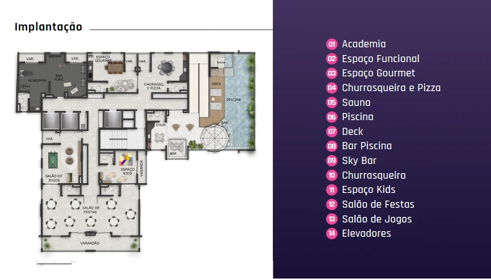 Mais de 15 espaços de lazer.